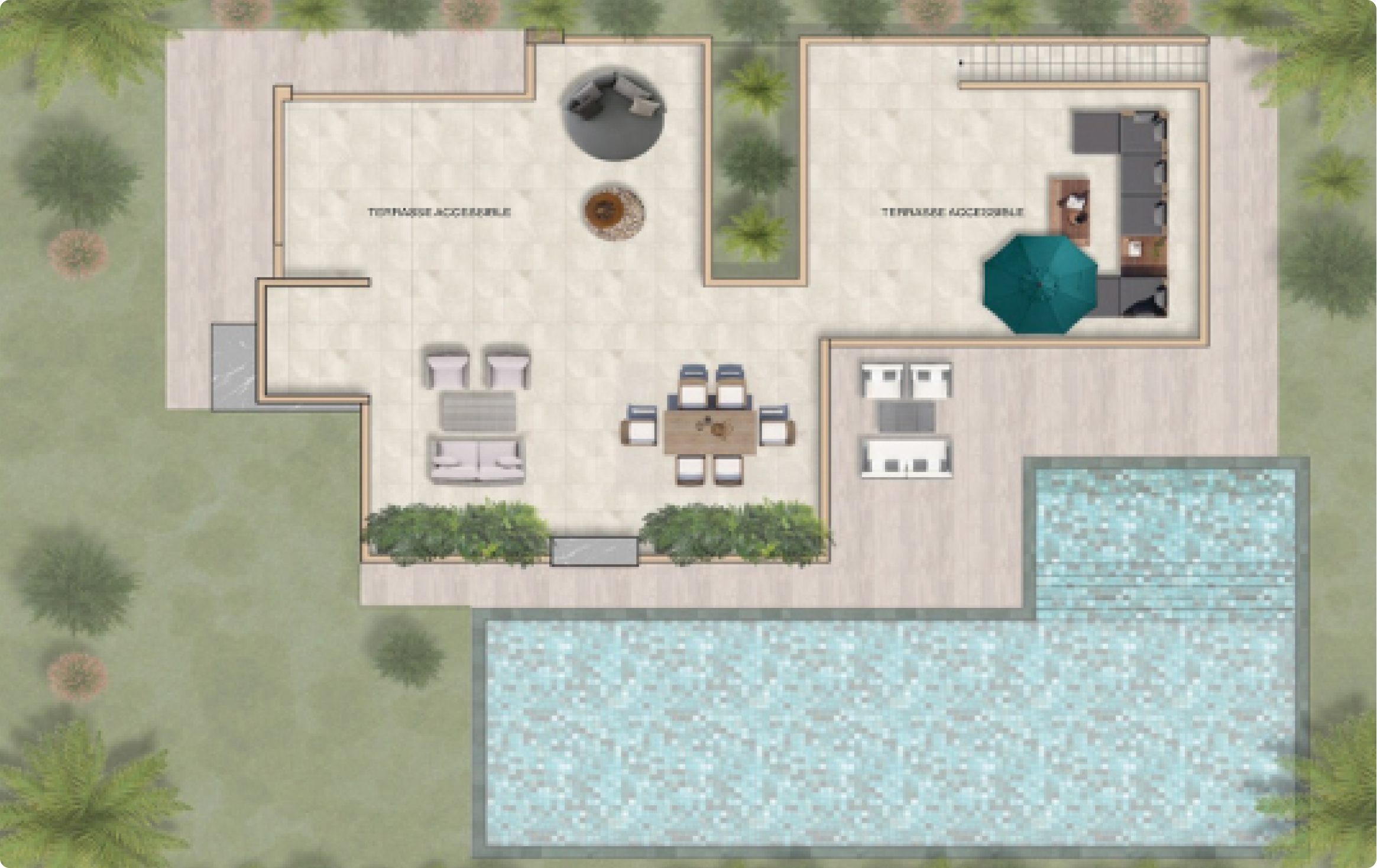 Le projet vise à maximiser la connexion avec la beauté des verts luxuriants des jardins et la beauté de Marrakech.